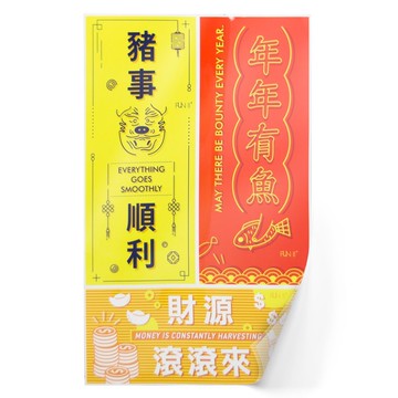 【刺繡】自黏式背膠布春聯 | 財富龍來 | 好運黏黏 | 龍年大吉