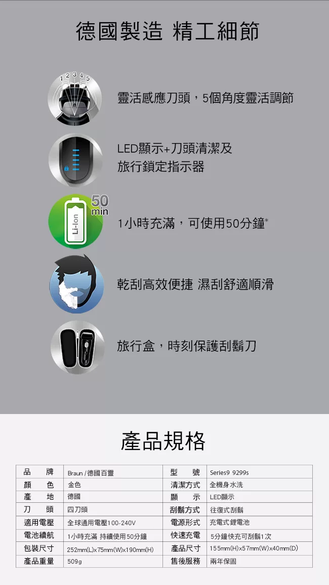 【福利品】德國百靈 BRAUN 9系列諧震音波電鬍刀9299s