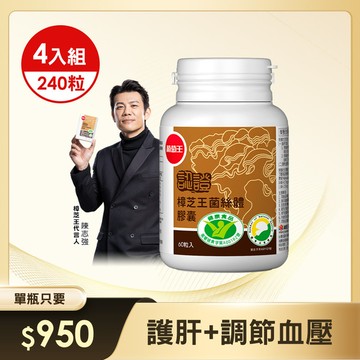 【葡萄王】認證樟芝王 菌絲體膠囊X4瓶(60粒/瓶) | 健字號 護肝功能