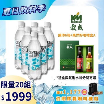 【7月限定】Crystal Valley礦沛氣泡水 585ml(24瓶/箱)*6+穀盛果然好喝 雙果酢禮盒A 360ml(2瓶/盒)