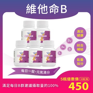 【享優惠5瓶組】維他命B群膜衣錠(30錠/瓶)X5瓶