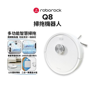 【2/8-2/12 LINE購物下單,享5%LINE POINT回饋】(預購)Roborock 石頭科技 Q8掃拖機器人(雙重零纏繞系統/10000Pa超大吸力/LDS雷射導航/二合一集塵盒水箱)