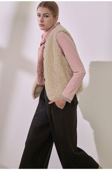 顯瘦黑仿皮草背心