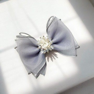 韓國 inpink 煙灰玫瑰晶鑽蝴蝶結髮夾