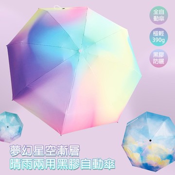 KissDiamond 星空漸層晴雨兩用黑膠自動傘 190T碰擊布 八骨 鋼骨 橡膠柄 夢幻