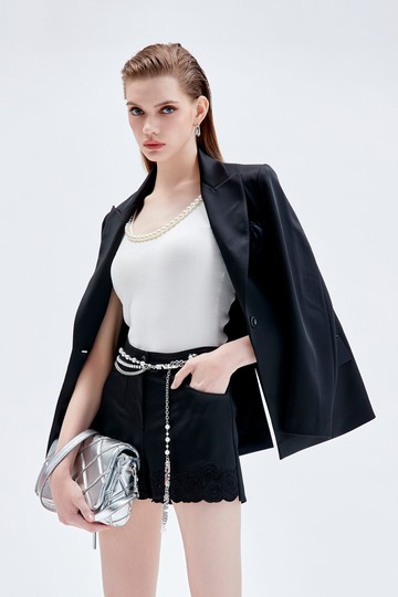 素面側開衩造型皮質短褲 兩色售 S/M