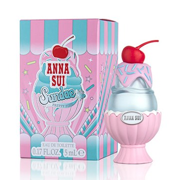 彷彿一個夢想成真的「冰淇淋聖代」遊樂場,將圍繞在遊樂園裡歡樂童趣的氛圍,鋪墊上童年記憶中「冰淇淋餐車」的復古元素。ANNA SUI果漾聖代淡香水將香水瓶身製作成聖代結構,三款「粉紅、淡藍、柔黃色」的柔霧感玻璃瓶,裝飾上不同色系的精緻細節,融入前所未有的風格,包含流動的果醬以及立體的彩針糖,並將聖代標誌性的「櫻桃」設計成為小香水瓶蓋,造型搞怪吸睛。