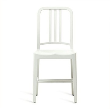 emeco 首件塑料作品 Navy 111 海軍椅,成功打開「質材再生」的新可能,將 Up-cycle 概念導入家具設計中,使用 65% 的回收寶特瓶(PET塑料),混入 35% 的玻璃纖維增加椅身強度,創作出不因冰封而脆化、不畏烈日所褪色的獨家作品。