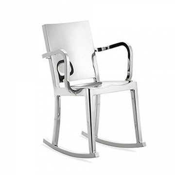 每張Hudson 哈德森單椅鏡面拋光版皆須增加8個工作小時進行拋光作業,除了是哈德森酒店訂製款之外,也是紐約現代藝術博物館MoMA所收藏的版本。而扶手搖椅那強烈、戲劇性的視覺效果,更是許多商業空間用來增添亮點的款式。