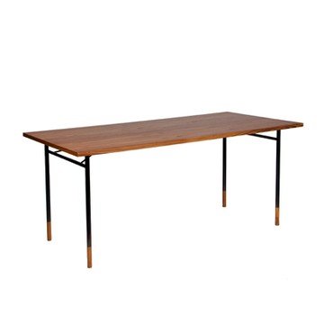 1945 年對 Finn Juhl 來說是個重要的一年,這年他不僅在哥本哈根 Nyhavn 成立了事務所,更打造出設計生涯具有重大意義的一張 Model 45 Chair,同年又為自己量身訂做了 Nyhavn 工作桌,直到 1957 年 Finn Juhl 將辦公室遷移到 Sølvgade 時仍在使用。其鋼架配以原木桌緣及桌腳,不只成為柔韌卻溫暖的實用作品,也是歷經大師多年使用,穩固又簡單的經久證明,可謂 Finn Juhl 少件的鋼管家具經典作品之一。