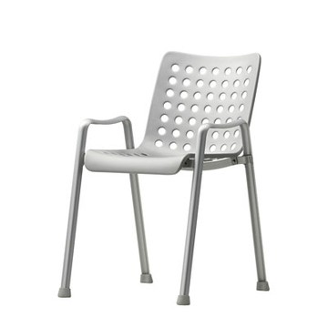 在設計初期 Hans Coray 思索著,一張能符合眾人期待並永傳於世的單椅,究竟需要具備甚麼條件呢?他嘗試使用鋁作為此張座椅的主要素材,更將整張單椅的主結構以三維模組壓鑄成型,將鋁金屬可塑性的特性發揮至極致,整張座面舒適著貼合乘坐者的身型,為了要確保放置於戶外空間時能阻擋風雨,更聰明的將座面規律的切割出91個圓形孔洞,不僅能大大增加乘坐時的透氣性,更輕巧的解除戶外家具最怕的積水問題,現代摩登的俐落造型,與強大的機能特性,在當年的展覽會上引起了大家的熱烈討論,可惜的是後續 Landi Chair 並未能順利量產,但它在設計家具演進史中,卻一直有著不可抹滅的經典意義!