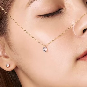 天然鑽石 迷你四爪鑲流動墜 純 18K 白金 黃金 玫瑰金 項鍊鎖骨鍊