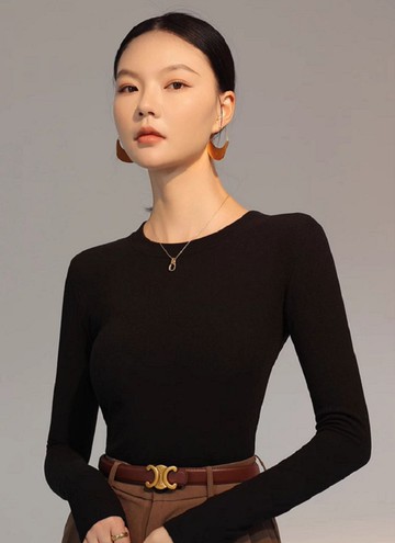 大表姐劉雯同款黑色露背打底高領針織上衣春秋新款長袖修身小衫