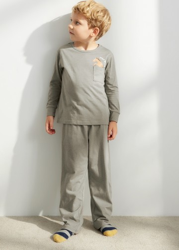 男童成套_拼圖森林.圓領口袋長袖睡衣(橄欖灰-勇敢小馬)