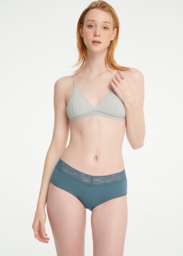 寧靜植物園.窄版V蕾絲高腰三角內褲(歸屬藍)