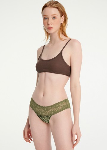 經典純色.V蕾絲低腰三角內褲(松針綠)