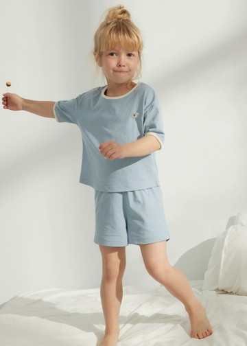 成套:女童成套_伴你左右.涼感寬鬆短袖睡衣(大氣藍-刺繡小比熊)