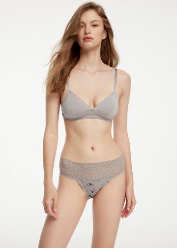 思薇爾 花蔓系列M-XXL蕾絲中腰三角內褲(汽泡灰)