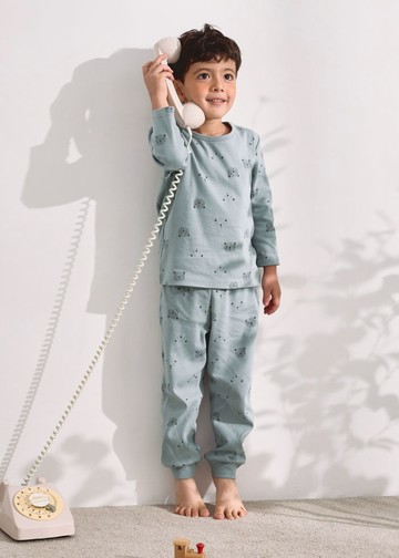 成套:男童成套_Happy farm.純棉圓領長袖睡衣(淺滄藍-熊熊)