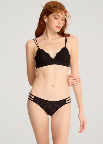 冬日氣息.花邊中腰三角內褲(黑-魔幻星星)