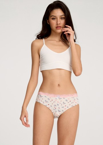 Forever Young.花邊中腰三角內褲(米白-格子小千鳥)