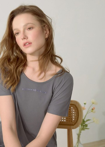 成套_史努比系列.圓領落肩短袖上衣(淺麻灰-三兄弟)