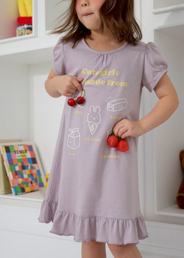 女童連身_Sweet Tooth.莫代爾棉圓領荷葉短袖睡衣(泡泡紫-甜點女孩)