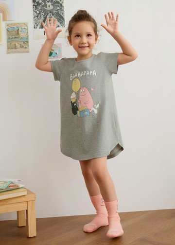 連身:女童連身_泡泡先生系列.長版短袖居家睡衣(淺麻灰-慶祝)