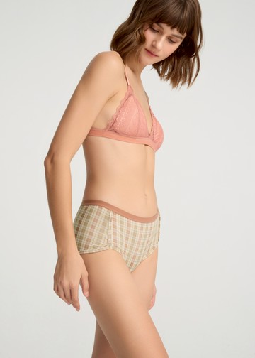 Journey.滾邊中腰平口內褲(雪松橘-毛料感格紋)