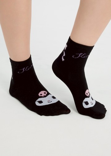 筒襪/中筒襪:酷洛米系列.緹花中筒襪(黑-蝴蝶結酷洛米)