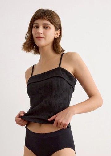 上衣_Travel memory.細肩帶抽針平口睡衣(黑色)
