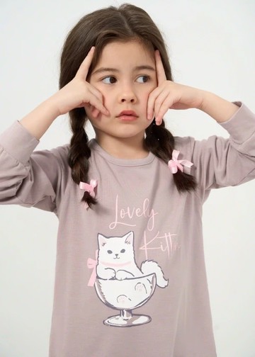兒童連身_雪地蹦蹦.居家長袖開叉睡衣(多維爾粉-Kitten)
