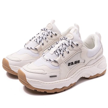 老爹鞋2025年夏季歐貨新款青年淺口圓頭系帶厚底純色情侶休閑鞋女
