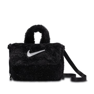 【NIKE耐吉】Faux Fur 黑色可愛絨毛斜肩小包 成人小包學生側背包時尚潮流單肩包毛絨手提包小孩背包(FZ1329010) 巨蟹座生日禮物 千元交換禮物 男生禮物