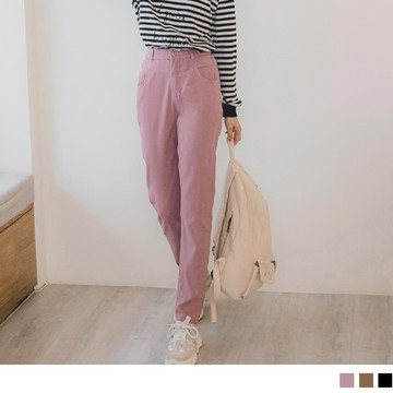 現貨★五折價$480★糖罐子【KK8594】後縮腰裝飾釦口袋素面長褲→現貨(M/L)