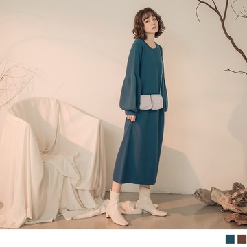純棉大翻領鬆緊澎袖襯衫洋裝