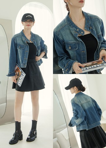 (S) 丹寧牛仔排扣藍色外套