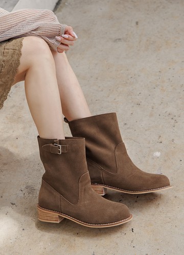 KOKKO個性質感雙條帶飾扣騎士短靴麂皮棕