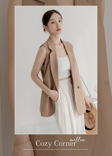 a la sha 小耳朵口袋立領寬版背心