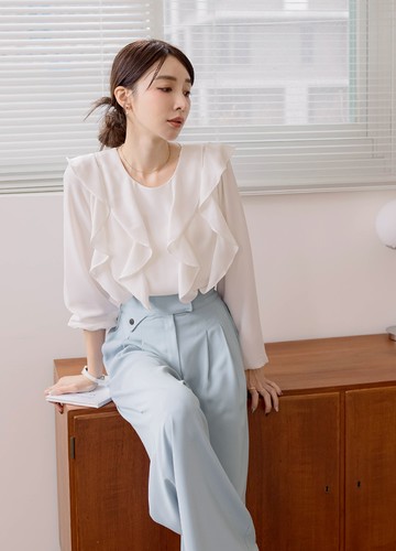 多荷葉雪紡上衣