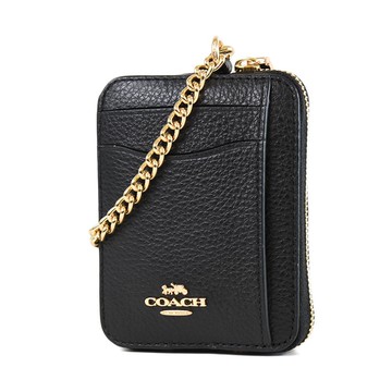 COACH 荔枝紋鍊帶證件零錢包-黑色