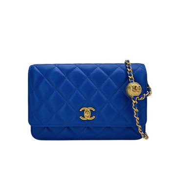 Chanel 經典雙C菱格紋羊皮Woc金球鍊包