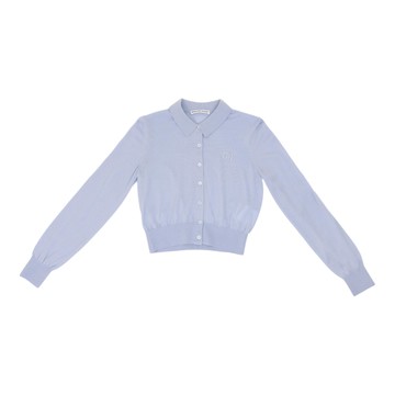 女裝 Logo刺繡圓領針織外套 CashSoft系列-淺藍色