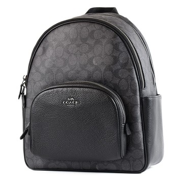 COACH 緹花LOGO雙側置物拉鍊後背包-灰黑