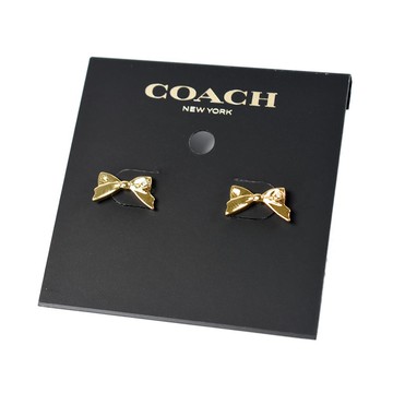 COACH 蝴蝶結晶鑽針式耳環-金色