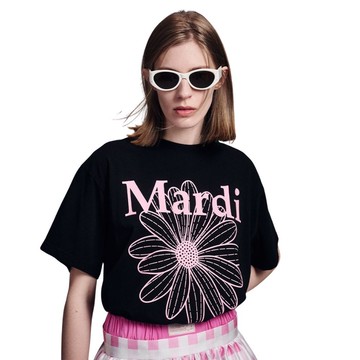 韓國 Mardi Mercredi TSHIRT FLOWERMARDI 經典印花 寬鬆短袖T恤 黑色粉紅BLACK PINK