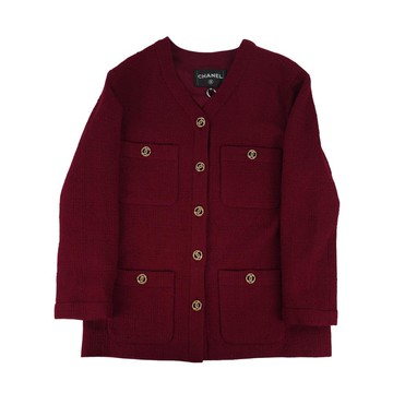 CHANEL 23B 粗羊毛呢無領夾克外套(酒紅色) 38 (展示品)
