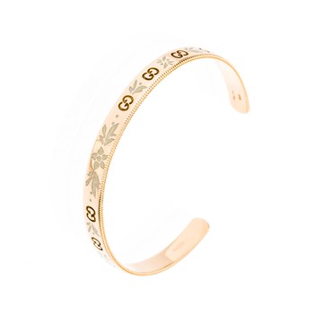 Gucci 18k金琺瑯手鐲(玫瑰金logo&花飾)