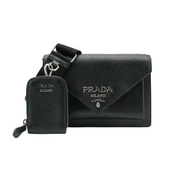 Prada 展示品 Saffiano 皮革磁吸斜背信封包(1BP020-黑)