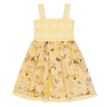 ZIMMERMANN Kids 黃色花卉異材質拼接洋裝